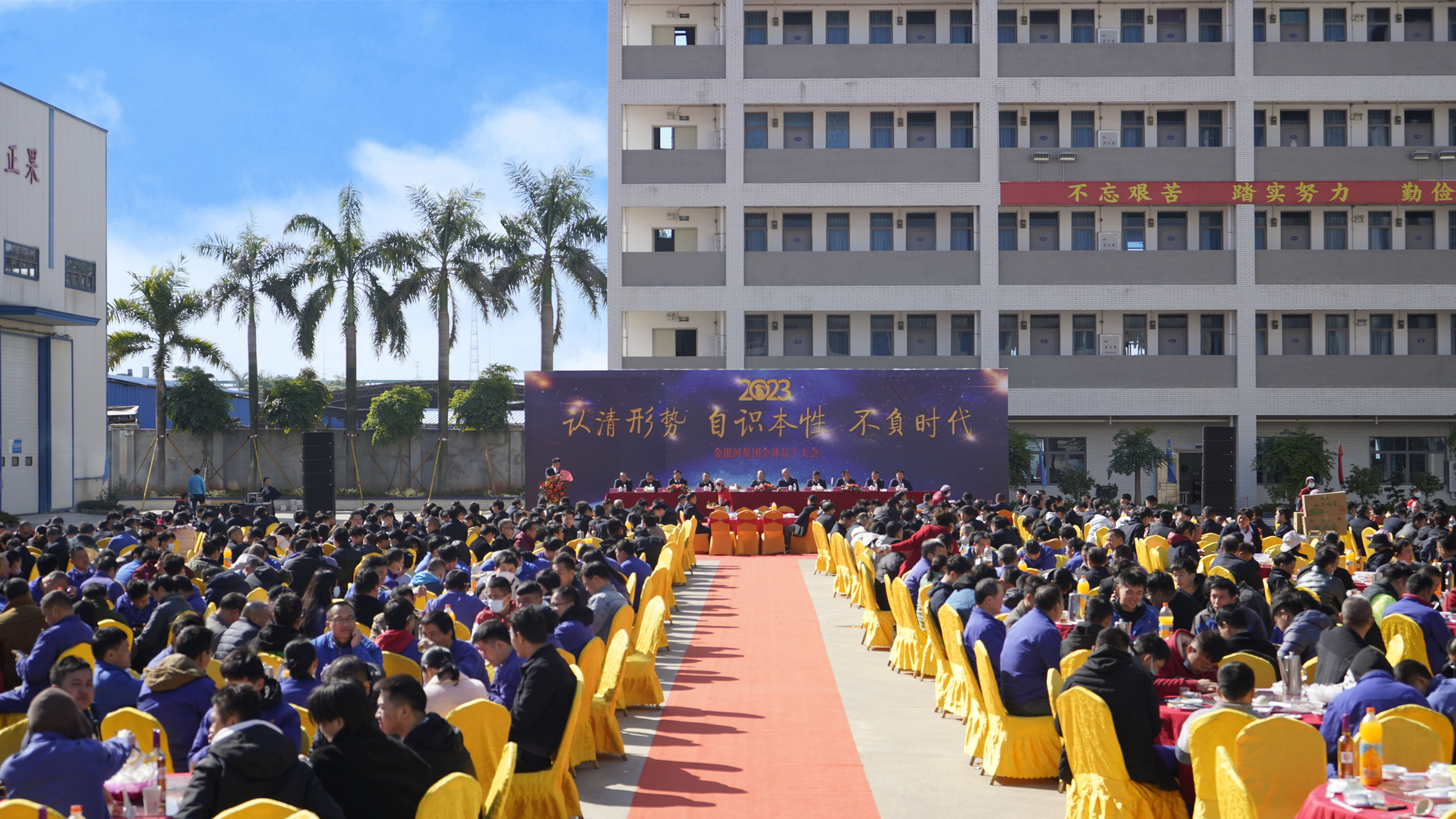 正月初九,陽光普照,祥和煦秀,金銀河隆重召開了2023年全體員工大會,各子公司也同步舉行了新年開工儀式。