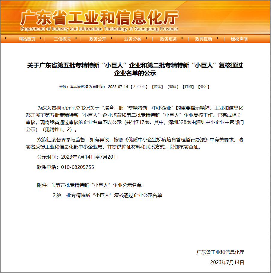 近日,廣東省工業(yè)和信息化廳公示了第五批國(guó)家專精特新“小巨人”企業(yè)名單,佛山市金銀河智能裝備股份有限公司位列其中,成功入選。