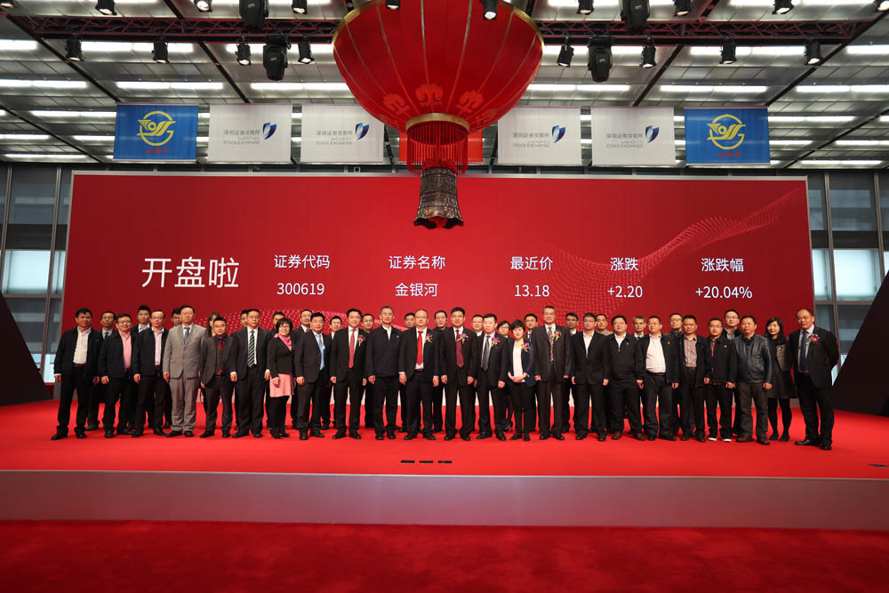 2017年3月,金銀河成功在深圳證券交易所創(chuàng)業(yè)板上市,股票代碼:300619。 金銀河在深圳證券交易所創(chuàng)業(yè)板的上市成功,標(biāo)志著金銀河開啟新的發(fā)展征程,金銀河將持續(xù)不斷提高自身實(shí)力,提供優(yōu)質(zhì)領(lǐng)先產(chǎn)品,提高客戶服務(wù)水平,用心回饋投資者,創(chuàng)造最大價(jià)值,與各方攜手共贏!
