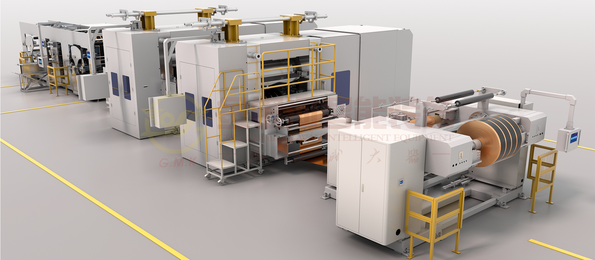 本設(shè)備用于鋰離子電池正負(fù)極片的精密輥壓分切,其主要由自動(dòng)放卷部分,除塵除鐵部分,入料拉伸除皺部分,輥壓部分,出料拉伸除皺部分,激光測(cè)厚部分,牽引分切部分,自動(dòng)收卷部分及電控部分等組成;該設(shè)備卷料開卷后,經(jīng)過(guò)除塵除鐵裝置、入料拉伸,進(jìn)入輥壓主機(jī),輥壓后的極片,經(jīng)過(guò)激光測(cè)厚儀在線厚度監(jiān)測(cè)進(jìn)入分切,最后通過(guò)自動(dòng)收卷機(jī)構(gòu)整齊地收成卷料。設(shè)備性能穩(wěn)定可靠。